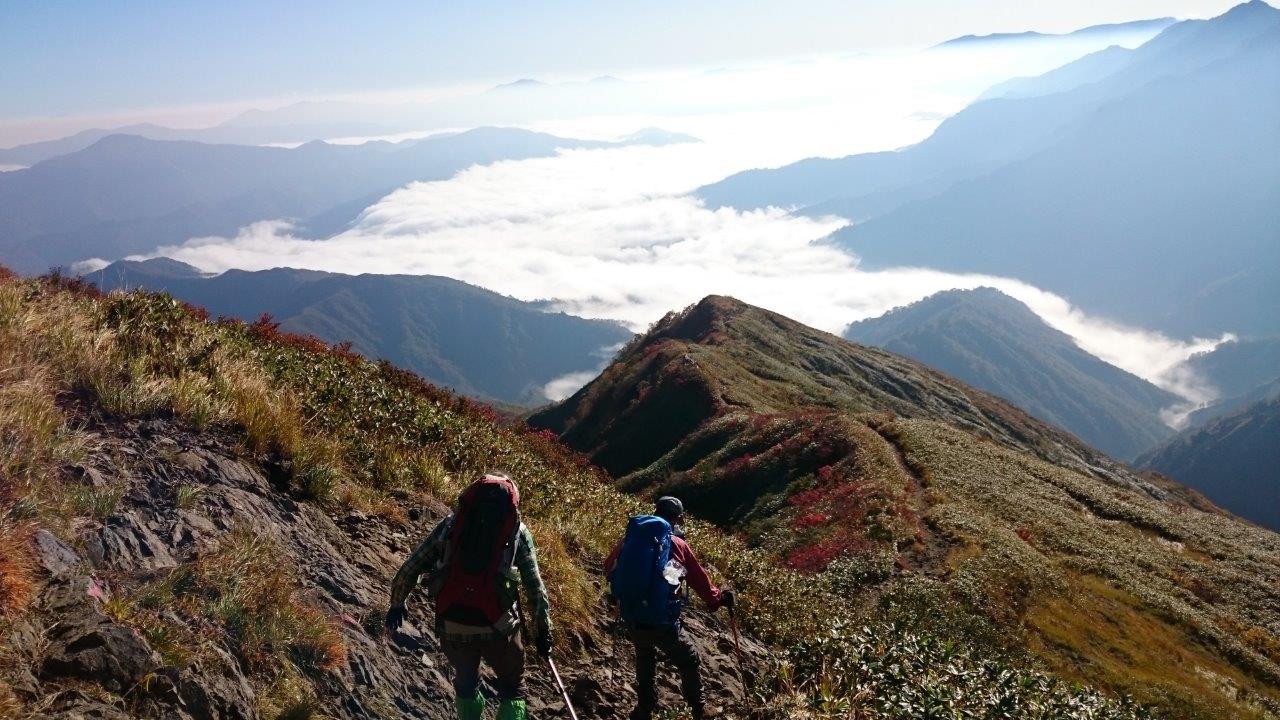 景色を堪能して朝食を造って食べて、下山の荷物つくりです。そして8:00頃下山開始しました。雲海を見ながらの下山は気持ちがいいですよ。