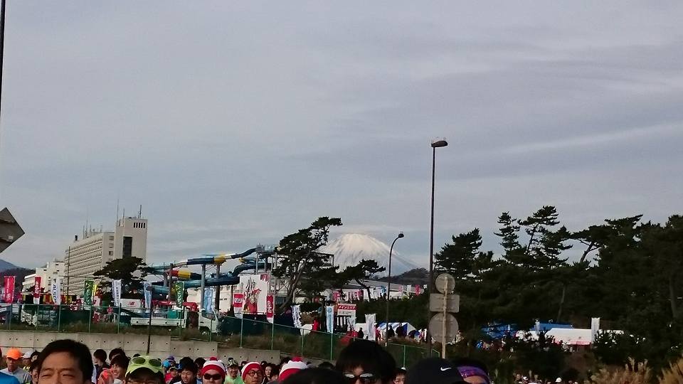 メインステージ前でラン仲間と合流して着替えなどをしたが早朝は風が冷たくスタート直前まで温かい格好でいた。そしてスタートの合図があったが私は後ろの方からのスタートでスタートラインまで20分くらいかかりました。富士山も良く見えてスタートの頃にはちょうど良い気温13度くらいになっていました。