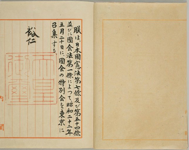 私の誕生日と同じ日には記念すべきこともあった。日本国憲法第7条及び第54条並びに国会法第1条により、昭和22(1947)年5月20日に第1回国会を召集することの詔書が発せられた日でもある。
