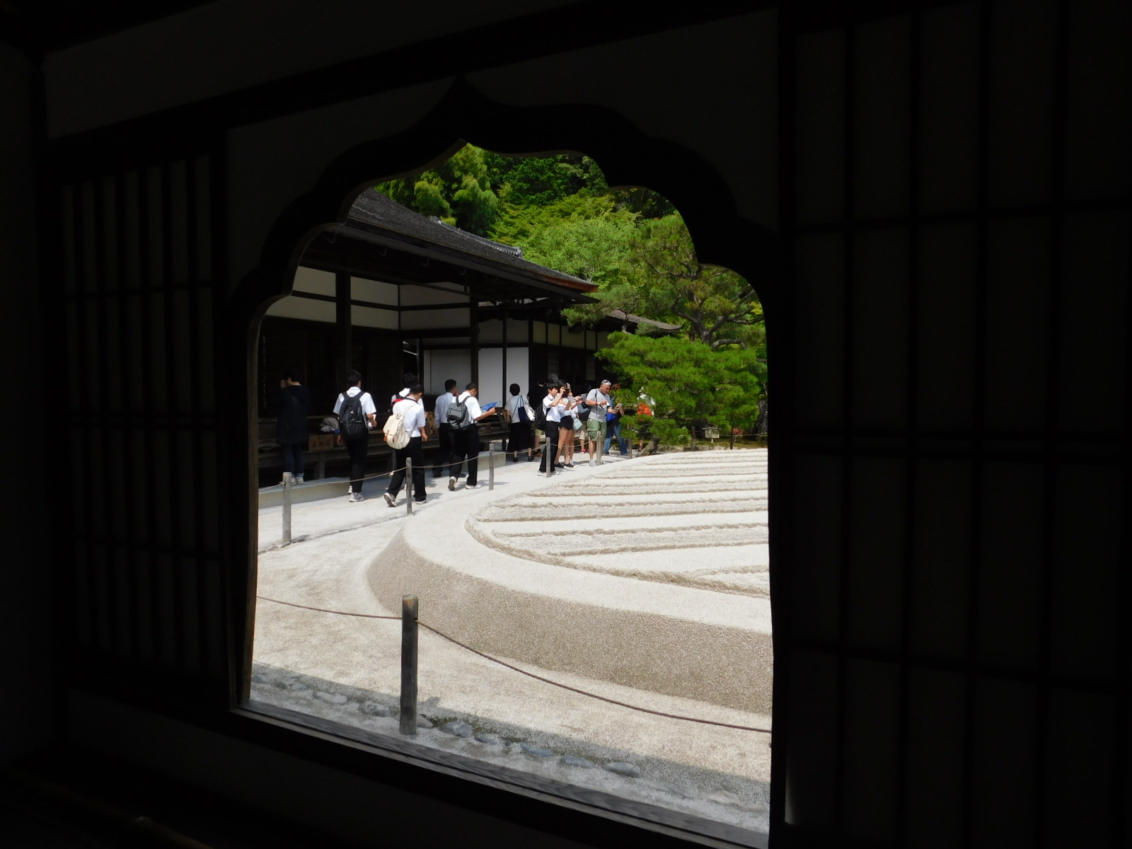 2日目修学院離宮からの続きです。バスで銀閣寺道まで戻り銀閣寺へと向かいました。このお寺も人気で外国人と修学旅行生であふれていました。25年ぶりくらいと思いますが昔と違った雰囲気を感じたのは観光化がさらに進んだからでしょうか。