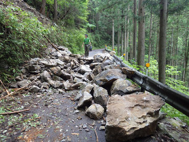平成29年8月6日(日)川乗林道(川乗橋ゲートより先)において大規模な落石が発生したため、