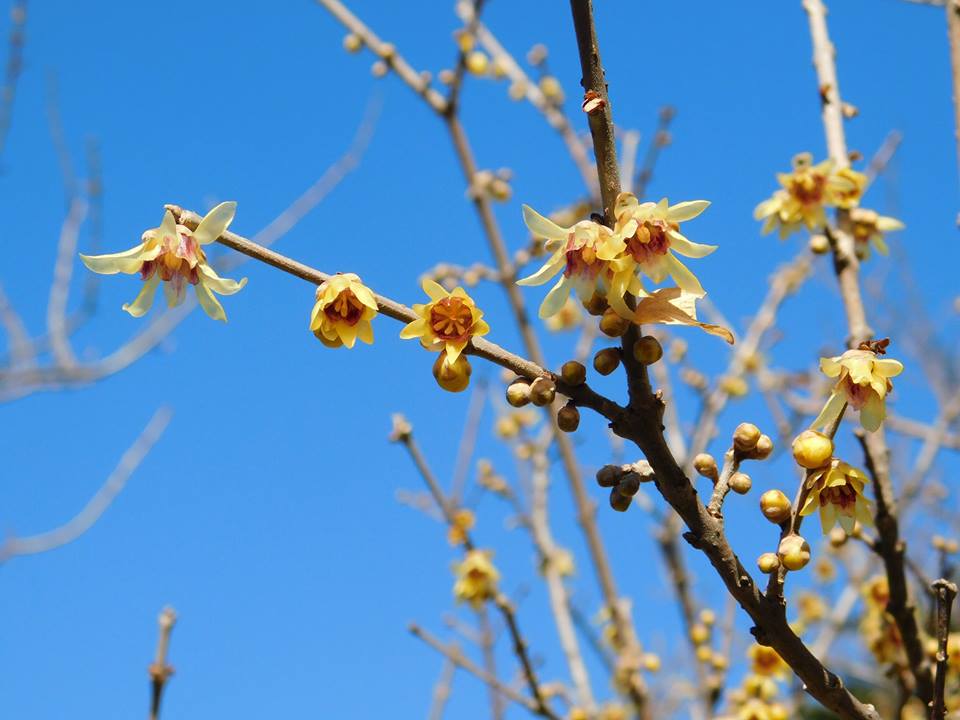長瀞町の宝登山で、新春の花ロウバイが咲き始めたとNewsでやっていたので新宿御苑に行ってきた。新宿御苑には何種類かのロウバイがあるが、そのうちの2種類です。