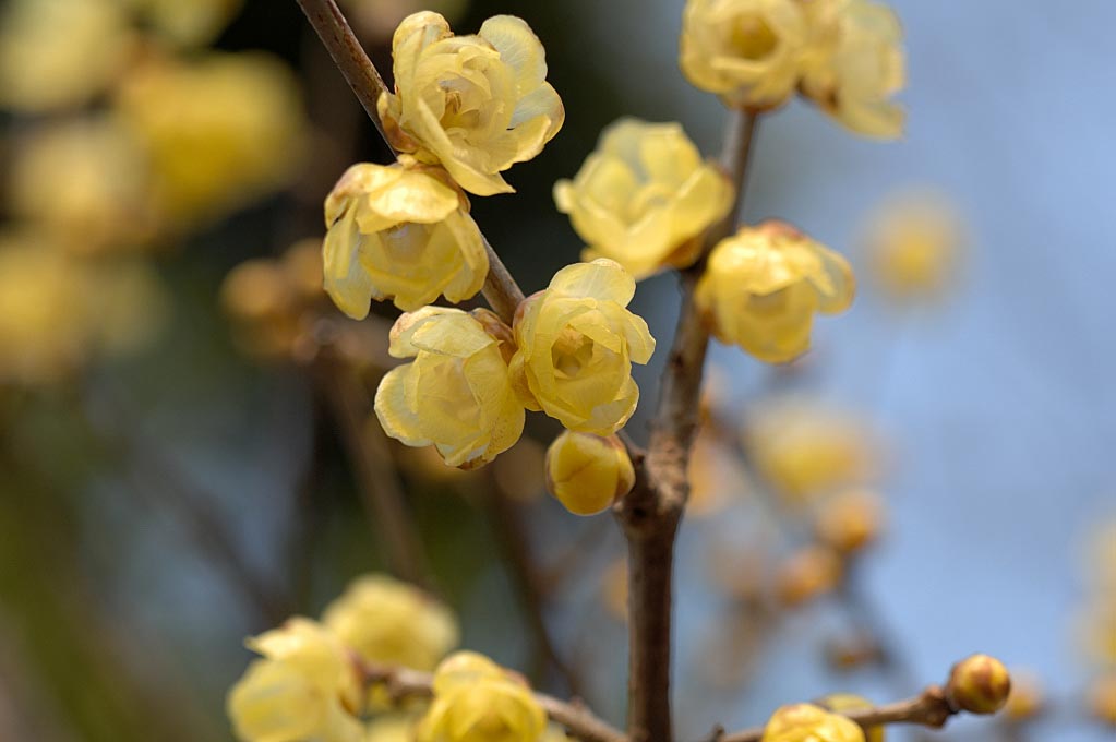 fabfa739ed5decde5b2ee3506fd8d800.jpg家の近くの公園などでも蝋梅が満開になっている。関東周辺では鎌倉のお寺などでみることが出来るが沢山の蝋梅がある場所は埼玉・長瀞の宝登山と群馬・安中のろうばいの郷であろう。埼玉県秩父郡長瀞町、宝登山(ほどさん)山頂にある蝋梅園には、約500株・2,000本の蝋梅が植えられていて満開のようだ。また、群馬のろうばいの郷は3.2haの敷地に1,200株、12,000本のロウバイが咲いていて敷地一杯にロウバイの甘い香が広がって入るようだ。どちらもそろそろ盛りを過ぎてきているようなのでお出かけの方は早く行った方がいいだろう。