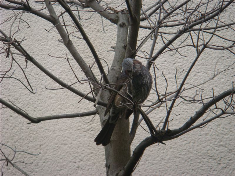 庭にある千両の実がだんだんなくなっていると思ったら小鳥がやってきていた。真っ赤な実をつまんで食べていたのだ。実をつまんでみたらやわらかくなっていて食べごろのようだ。ヒヨドリだろう。止まっている木ははなみずきで何年か前に巣を造り卵を産みヒナをかえしたことがある。そのとき生まれた鳥ではないだろうが・・・
