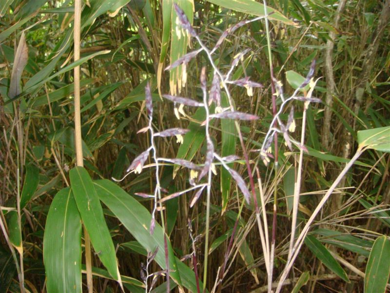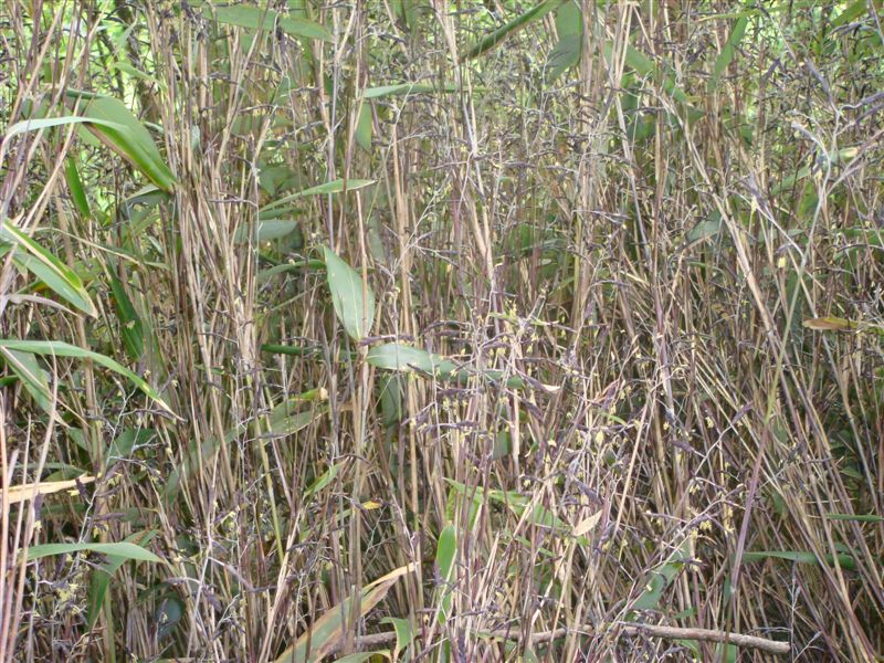 竹に花が咲くとかれるとは聞いているが花の咲いている笹は枯れだしている。ほんとのようだ。竹や笹の花は、見ようと思ってもそう簡単に見られるものでは無いようだ。竹は地下茎を中心に無性生殖で増え地下茎に蓄えられた栄養で竹の子を作り、さらに地下茎網を発達させて広がってゆくと言う。あたかも、種子でよりも確実に勢力拡大を図るようですが、植物として花を咲かせ種子を作ることによって、より広範な生息域の拡大や種としての進化も期待できるます。その為の開花が、「数十年に一度」というまれなできごとらしい。笹に花が咲くと不吉との言い伝えもありますが、会津の民謡「小原庄助さん」には会津磐梯山は宝の山よ、笹に黄金が生り下がる」と。吉兆と思うことにしよう。私たちはとてもラッキーだったのだろう。
