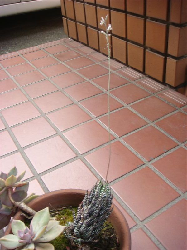 花かなと思っていたがなが~~い先にちっちゃな花が咲き 始めました。サボテンの名前は分らないが体の割には可憐な花である。よく茎が折れないで咲いたものだと感心している。これ からも何もせずにほって置くのだがまた咲くのだろうか?それとも何年かの周期に咲くものだろうか。次回が楽しみだ。
