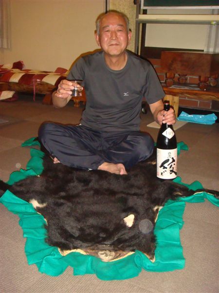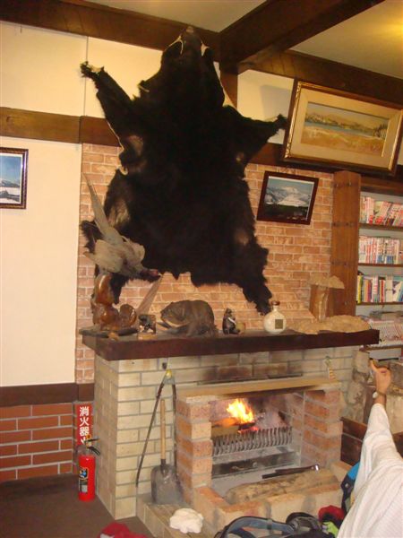 黒い毛皮に艶があって、そんなものが座布団代わりにあるなんて、さすがマタギのペンションだと思います。