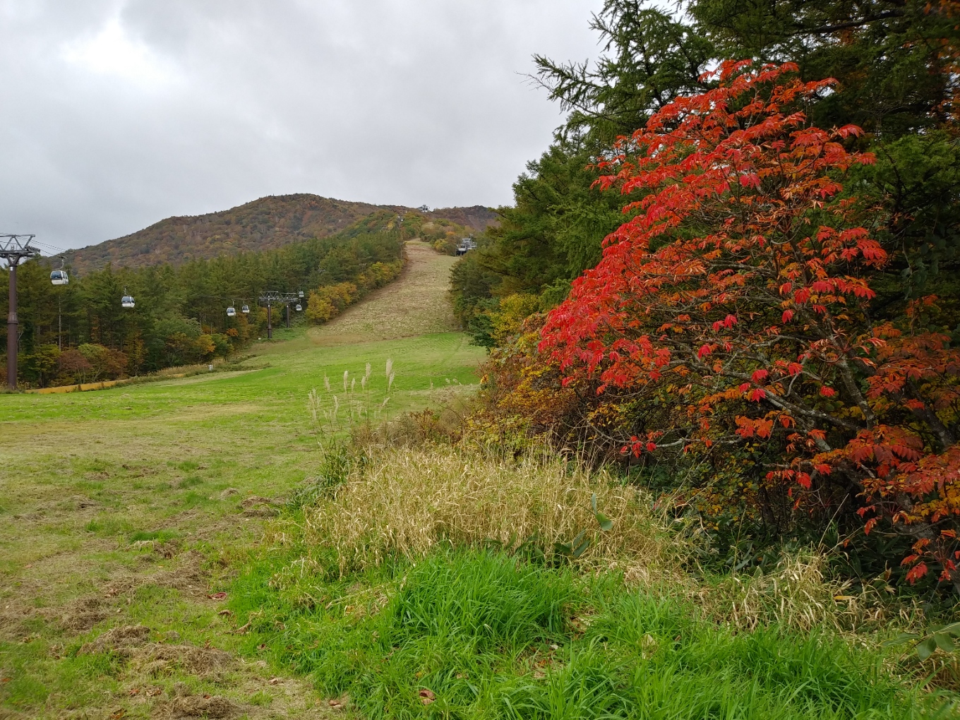 そしてロープウェイで下山しました。スキー場の紅葉も美しいです。