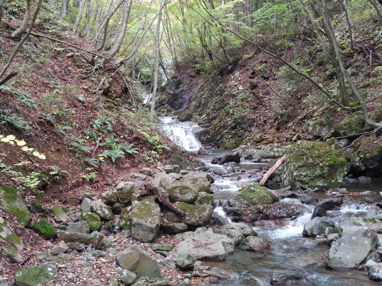 宿を出て日暮の滝を目指します。昨年の台風19号で林道ががけ崩れで鏡ヶ沼に近い駐車場までいけないので手前の駐車場に止めます。