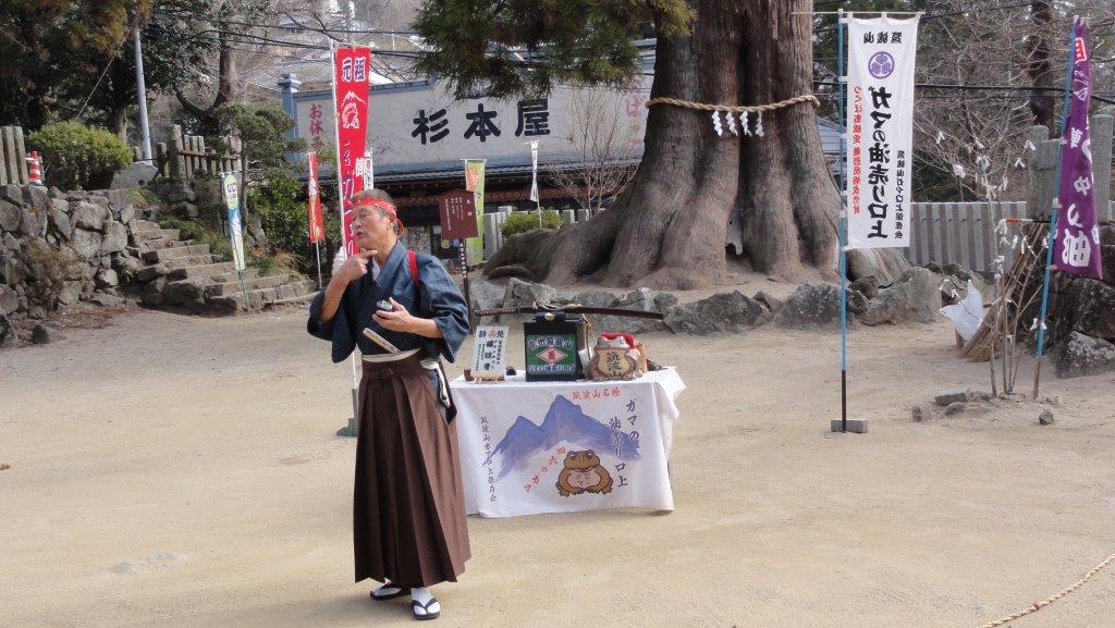 やってました!ガマの油売り口上を。5人くらいいるでしょうか。交代するのでしょうね。