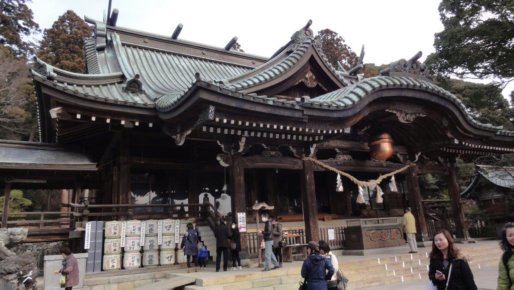 バスを降りて神社へと向かいます。おみやげ物さんにはガマのあるらがうってますね!