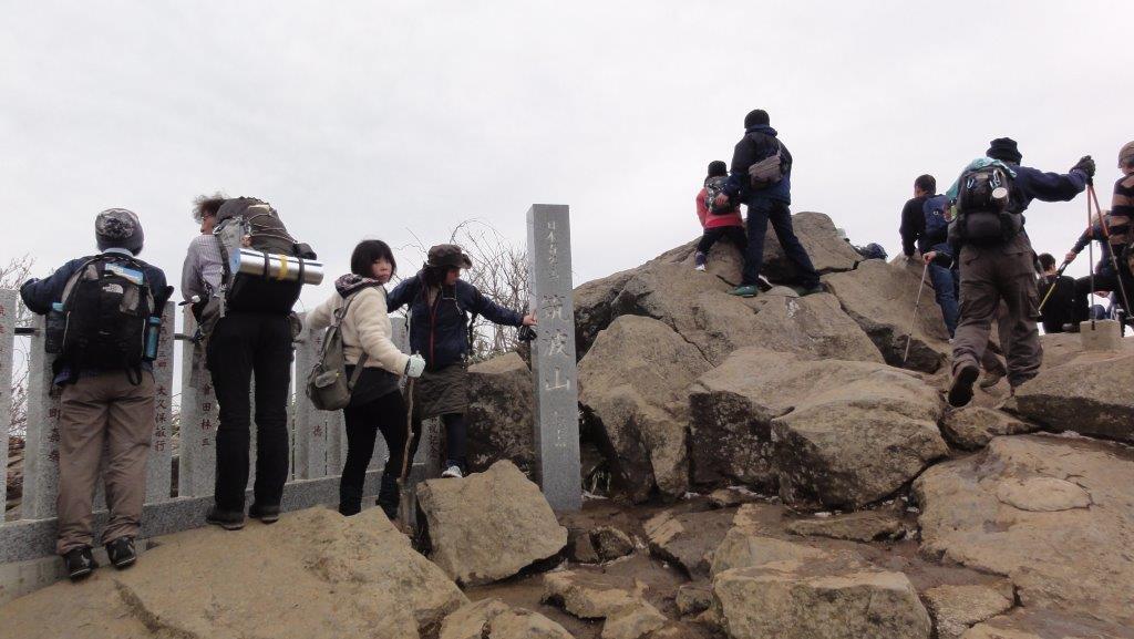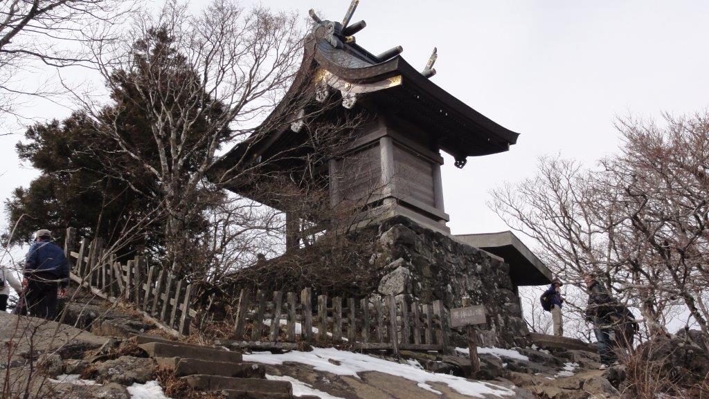 女体山のほうが標高が高いのでこちらに100名山の標識が立ってました。