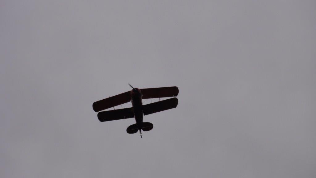 変な飛行機が上空を飛んでました。しばらくすると山友たちが登ってきました。