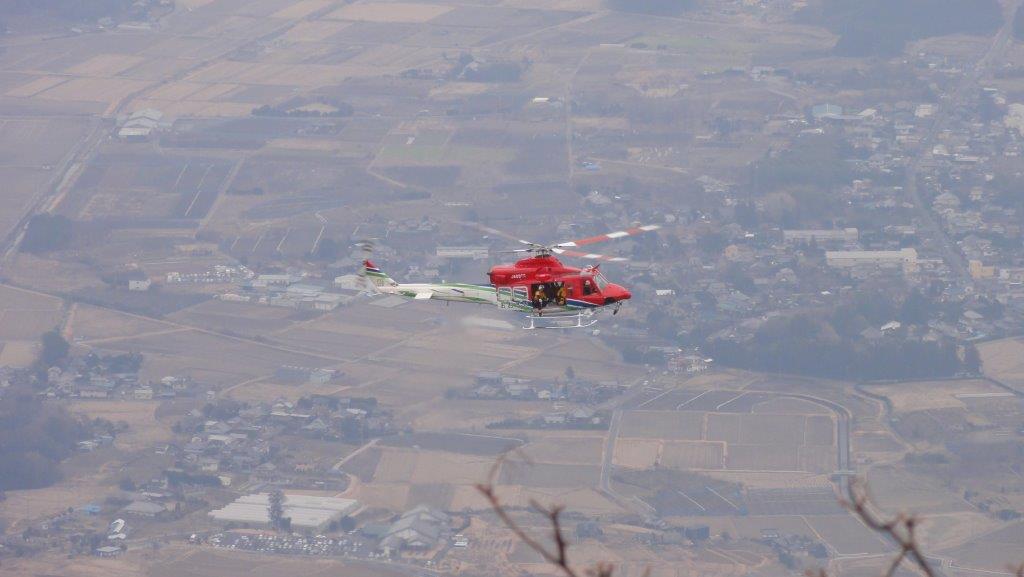遭難者が出ているのでしょうかヘリがホバリングしてレスキュー隊員が体を乗り出しています。