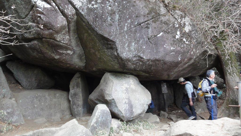 名前のついた岩を見ながら足場の悪い(岩ですべりやすくぬかるみも多い)急な坂を下ります。