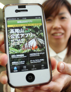 八王子市観光課が高尾山の動植物の魅力を紹介するスマートフォン向けの公式無料アプリを公開し、高尾山にすむ鳥の鳴き声やムササビが飛ぶ映像などを 楽しめるそうだ。季節ごとの植物や動物、昆虫、鳥類といった9つの図鑑をアプリに収録し、登山客が高尾山で目にする機会の多い動植物587種類の生態や 見られる時期と写真を載せている。春-初夏の植物図鑑にはタカオスミレやヤマルリソウをはじめ、104種類を紹介していて子どもたちの自然観察、調べ物 にも役立ちますね。7つの登山ルートについても、登り口や分岐点、景色のいい名所を写真と地図で案内されておりホーム画面にはルートの通行止めや市内 のイベントの情報についても表示する。てんぐのキャラクターを操作するゲームもついてますよ。私も早速ダウンロードして楽しんでいます。アンドロイ ドタブレットでも大丈夫ですよ。詳細説明は→(こちらから)ダウンロードサイトも出てい ます。