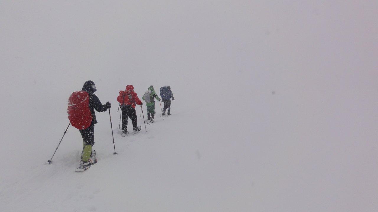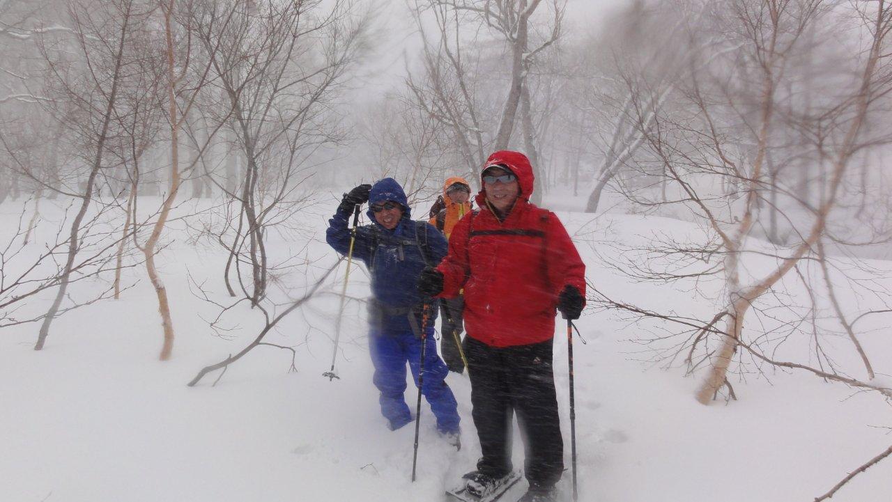 吹雪の中ルートを探して桧枝岐小屋を目指しました。