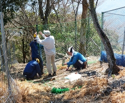 和歌山県田辺市の大塔山(約1122m)頂上の登山道で動物が往来できないよう防護ネットを利用した扉を3カ所に作り鹿の侵入を防ぐことにしたようだ。「 今は防護ネットをひもで止めているだけなので、開けた後は必ず閉めてほしい」と登山者に協力を呼び掛けている。大塔山は紀南を代表する山で1998年に は頂上付近の自然林が誤って伐採された影響で、近くにある本州最南端のブナ林の大木が相次いで枯死している。その後、新芽がシカなどの食害に遭った ため2009年に登山道を挟んで「前の川国有林」と「大塔山国有林」の2カ所に、金属製フェンス(計約36m)を設置し古座川町も金属製フェンス(約120m) を作った。設置から4年目たち防護柵内の植生は回復の兆しを見せているが、登山道として残した約200㎡が食害に遭っていて草木がまったく生えない状態 になっているため専門家から植生回復の措置が必要との声が上がっていた。「今後、閉め忘れがないように改良を加えていく」そうだが閉め忘れないよう 協力しましょうね。
