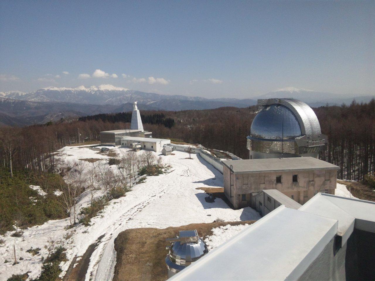4月5日に京大ひだ天文台に行ったがシステムの定期点検の後に天体望遠鏡の見学をさせてもらった。とっても天気が良かったので研究棟にある60cm反射望 遠鏡のテラスにでて絶景を楽しみことにした。