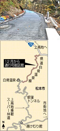 白骨温泉への道路通年通行可能に