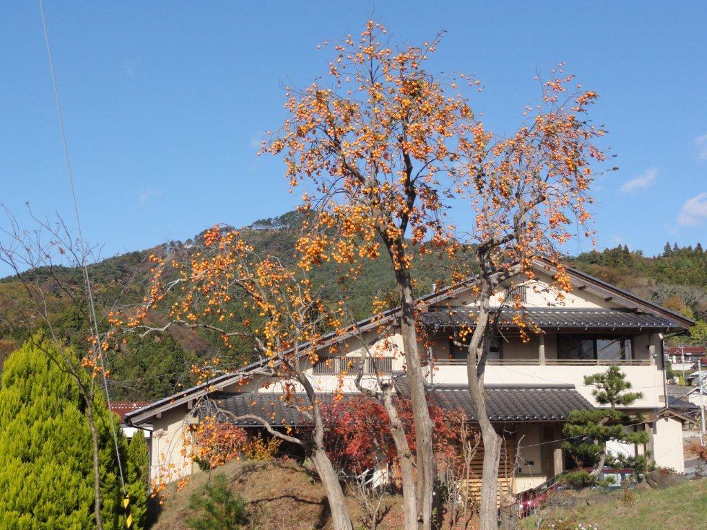 柿木の後ろの山は亀山です。
