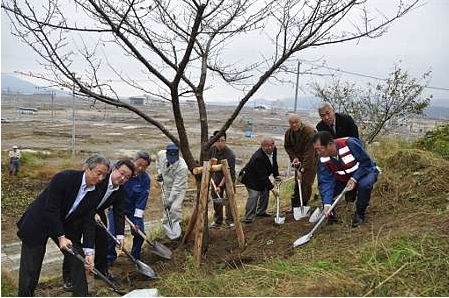 東日本大震災の被災地で、津波の恐ろしさを後世に伝えようと、津波が到達した地点に桜を植樹したり、石碑を建立したりする計画が進 められているが津波の到達点を桜の木でつないで被害を後世に伝えていく「桜ライン311」の植樹が始まったようだ。岩手県陸前高田 市で被災した橋詰琢見さんが市内の若者らと「桜ライン311実行委員会」を立ち上げ11月6日の「第1回桜ライン植樹」に合わせて神 奈川県松田町から寄贈された河津桜20本を植えたそうだ。陸前高田では5月の連休ごろにソメイヨシノが咲き始めるが、河津桜 だと3月中には花を咲かせるようだ。桜ラインは津波の到達線(総延長約173km)に、10mおきに桜を植える計画だそうだがぜひ手伝いた いのでなにが協力できるか少し調べてみようと思う。