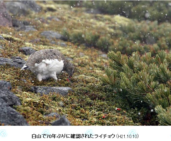 白山は花の種類や多さで有名で登ってみたい山だがまだ私はいけていない。その白山で昨年6月に約70年ぶり に国の特別天然記念物ライチョウが発見されていたが今年8月に実施した調査であらためて確認されたそうだ。こ のライチョウは昨年10月にも確認した個体とみられており、冬を越し白山に生息し続けていたことは、豊かな 自然環境が残されているようだ。調査はライチョウの生息確認のため、環境省と石川県が5~8月に8回実施し、 確認したのはメスの成鳥だそうだ。環境省の要請で登山客が多い期間中の公表を控えいて今回の発表し調査 は11月まで行う予定。山でライチョウに出会うのは楽しいですね。花とライチョウの山になって欲 しいです。