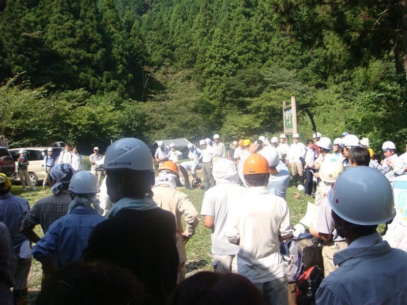 暑さにめげず130人くらい集まった。今回は間伐作業です。