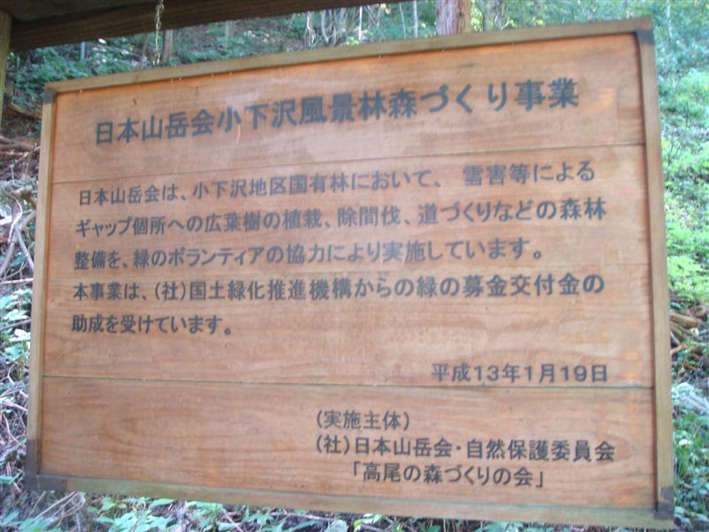 私たちのの班は1時間くらい登った初期の植林地区で私たちの活動の立て看板がある。