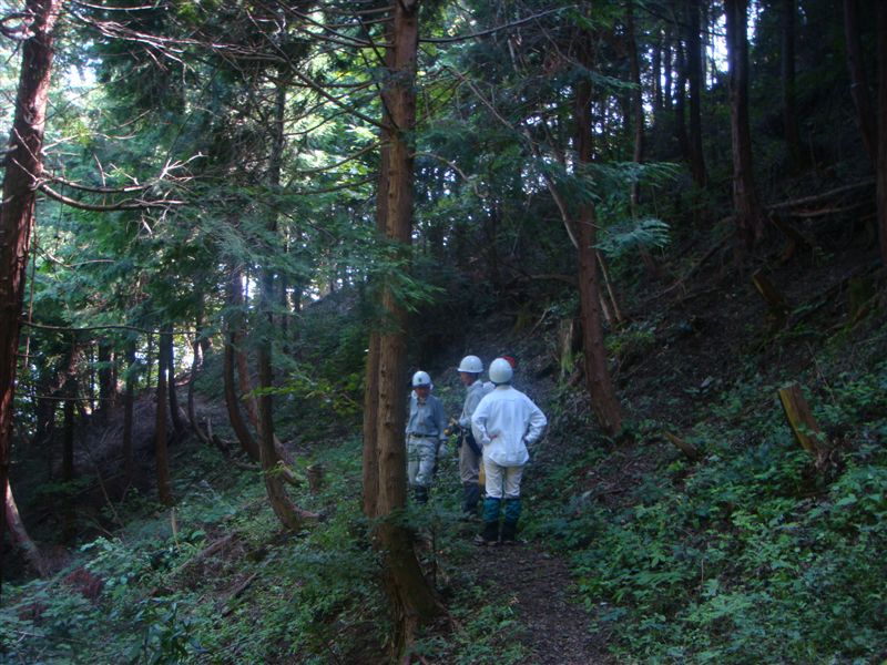 伐採する木を選びながら行い無事終了しました。標高800mくらいなので休んでいるときは風が気持ちよかったですが・・・・大汗かいてきました。