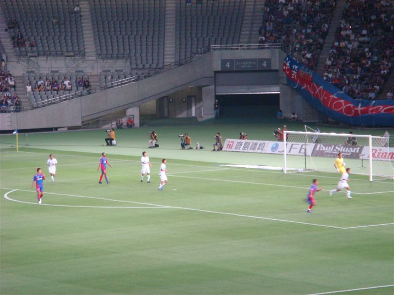 サッカー観戦は念に一度位しか行かないが会場の雰囲気と選手の動きが一体となってTV観戦では味わえない楽しさがある。ゴーr後ろの熱狂的なサポーターの応援振りを見ているのも楽しい。オフサイドも良くわかる。良くわからないのは反則である。レッドカードが出て退場となるシーンが2回あったがTVならスローモーションで再現が見れるが会場では見れない。したがってブーイングが激しい。私はゴール裏のサポーター席には遠慮してバックスタンドのほぼ中魚で観戦した。入り口には着席応援と書いてあった。ゴール裏のサポーターは試合開始前から終了までほぼ立ちっぱなしで体全身で応援している。選手も幸せだろうと思った。写真はホーム側のゴールです。右上からバックスタンドまで満員でした。昨日の写真はアウェイ側なので観客があまり見当たらないくその差が良く判ると思います。