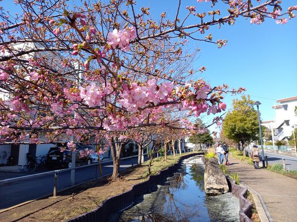 せせらぎ遊歩道の河津桜が満開