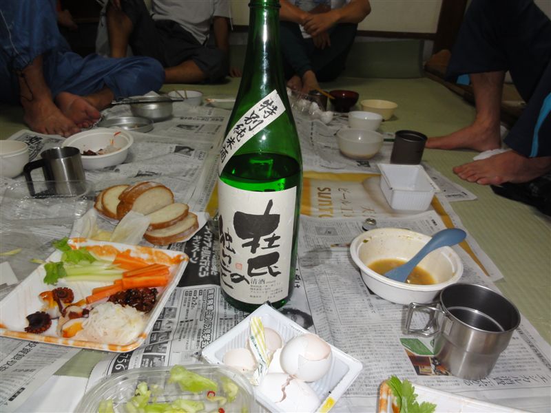 できあがりました~~~。大なべにいっぱいです。おいしそうでしょ。そのたおつまみもたくさん調達してきてくれて日本酒2升が準備されていました。