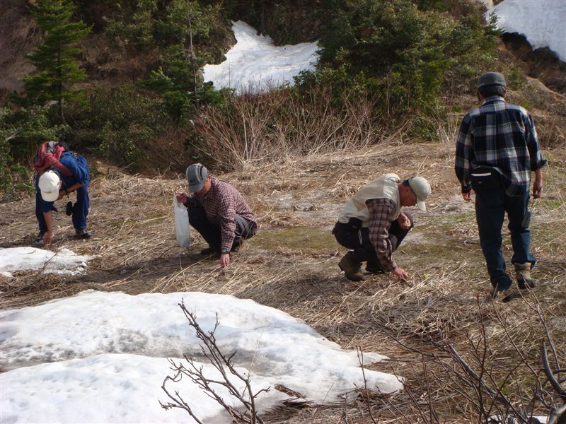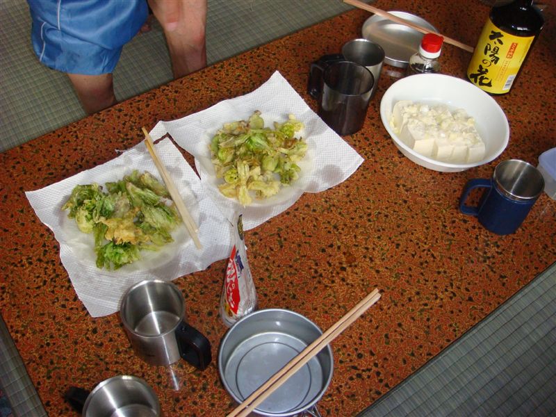 まだ雪が沢山残っていましたがふきのとうを摘み取り自炊場で天ぷらにして食べました。取立てで香もよく美味しい天ぷらが出来ました。