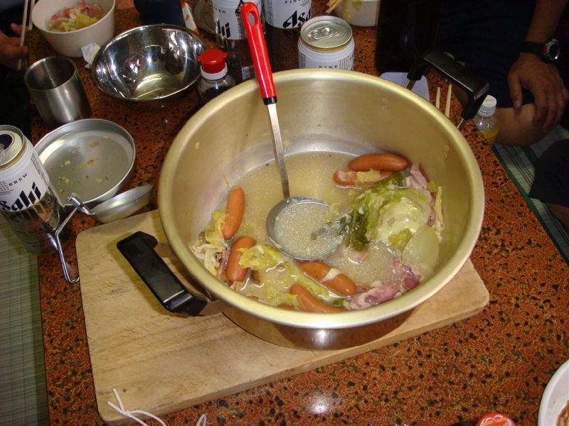 メインディッシュの鍋も作りました。食料係が事前にメニューを考えて食材を購入して自炊場で調理して宴会をしたのである。ここの温泉は旅館部と湯治部があり我々は湯治部に宿を取り自炊を選んだのである。格安です。