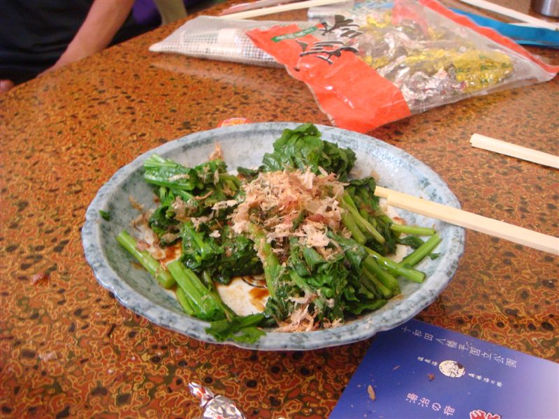 お向かいに宿泊されていた秋田の湯治客の方からは自宅菜園での野菜をおしたしにして頂きました。ありがとうございました。