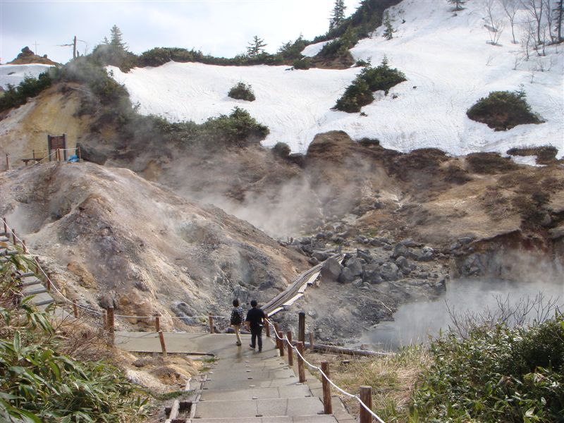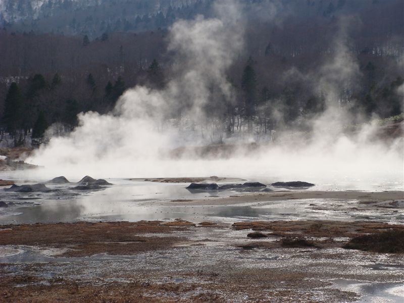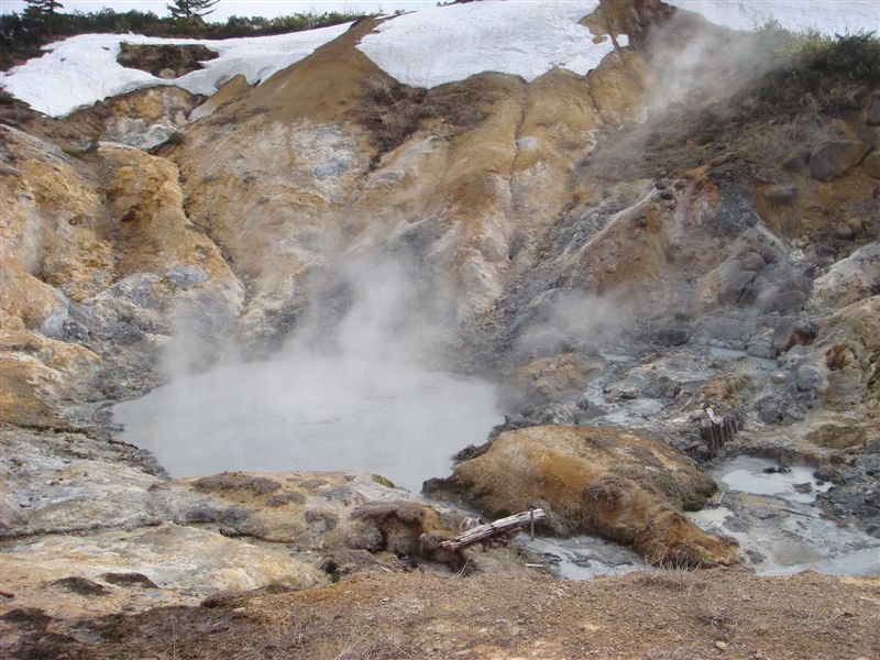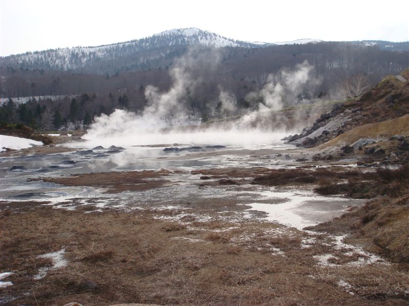 八幡平はアスピーテ型火山(楯状火山)で、山あいのいたるところに火山性の湯泉が湧き、火山観察の場所がいくつもあります。とくに後生掛温泉には火山観察のための後生掛自然研究路が設けられていて日本一の大泥火山をはじめ、オナメ・モトメ・大湯沼など生きた火山現象を観察することができます。