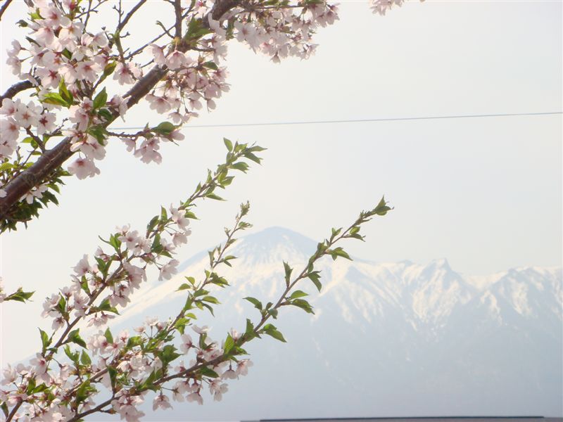 そして帰路の途中八幡平の麓では桜がまだ咲いており、岩手山の残雪をバックに写真を撮り帰路についた。