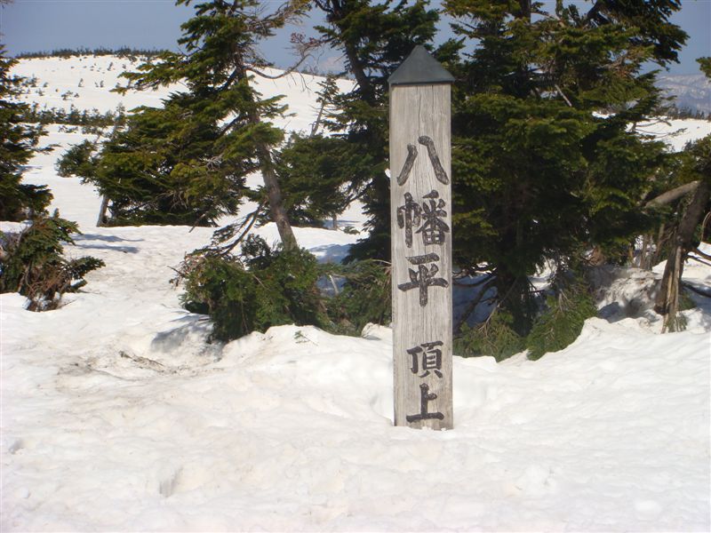 鏡沼(めがね沼)の横を通過してすぐに山頂へ。駐車場から30分弱で八幡平山頂に着いてしまうが雪はまだ2m弱あり登山やスキーの人以外は登ってこないので静かだ。