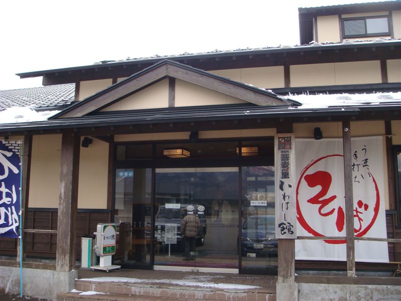 東京では桜が咲き出したが裏磐梯は雪が降り真冬並みの寒さであった。横浜から車で7:00に出発し東北道蓮田SAで山友の車と合流し一路裏磐梯へと車を進めた。猪苗代磐梯高原ICで高速を降りておいしそうなお蕎麦屋さんに直行した。野口英世記念館のそばのいわはし館である。腰もありおいしいおそばでした。