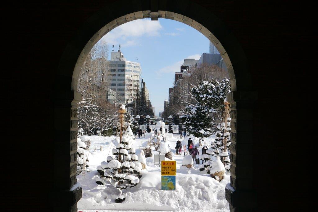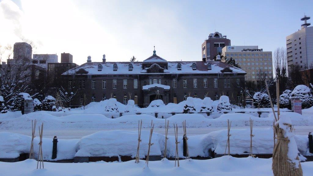 中には入りませんでしたがもんから雪に煙る赤レンガがいかにも北海道らしい景色でした。