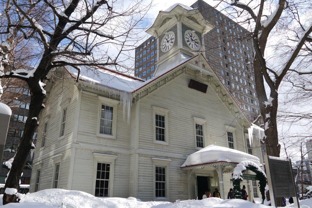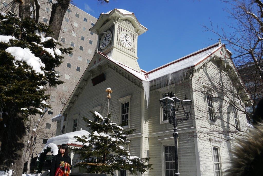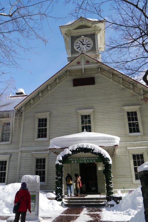 次は札幌時計台です。北大の前進だった札幌農学校時代の演舞場ですね。内部は依然見ているので外からの見学だけにしました。夏もいいけど雪の中の時計台はまた雰囲気がいいですね。