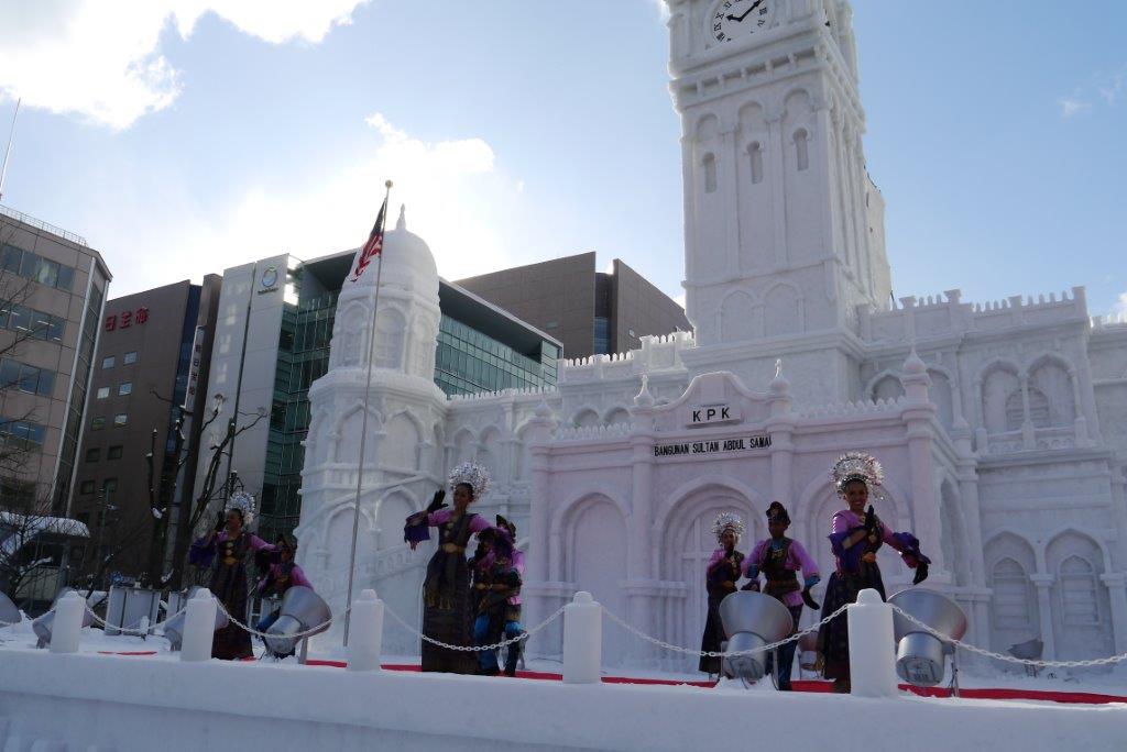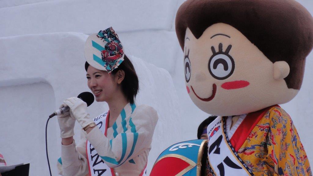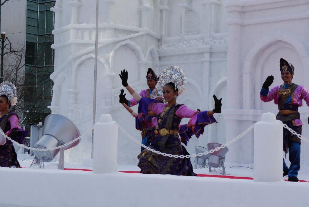 マレーシヤからきて観光宣伝をしていましたが見ているほうが凍えてしまいます。
