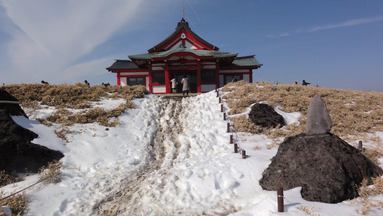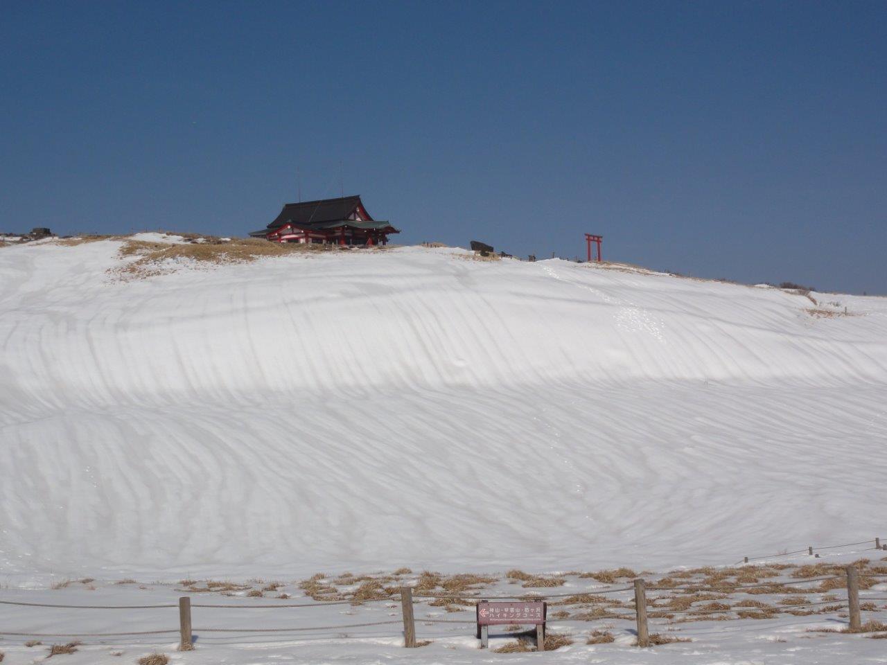 山頂駅から箱根神社元宮までは雪がまだ50cm近く積もっています。
