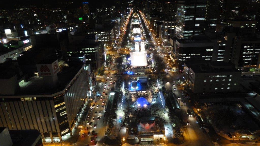 テレビ塔も夜景を見にの登りました。大通り公園の雪祭り素敵です。