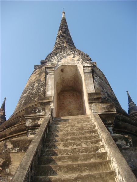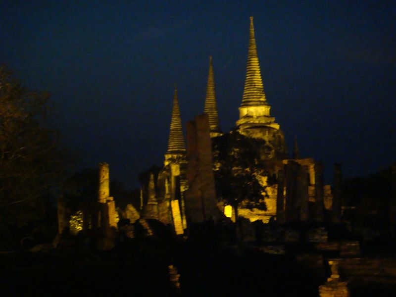 現在は白く風化したスリランカ様式の3基のチェディが残っているだけだ。中にはアユタヤ歴代王の3人の遺骨が納められているそうだ。