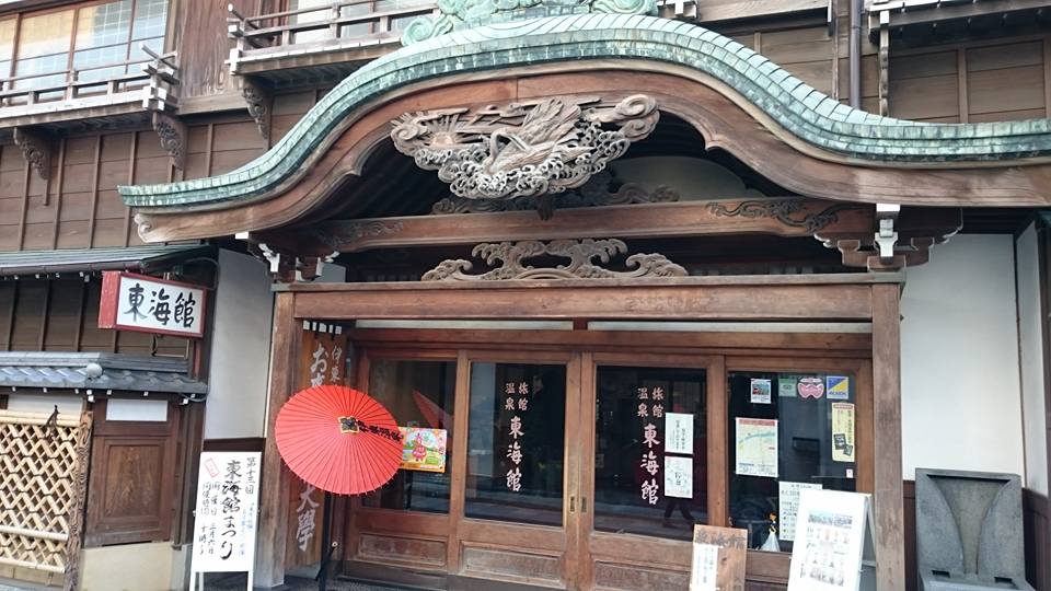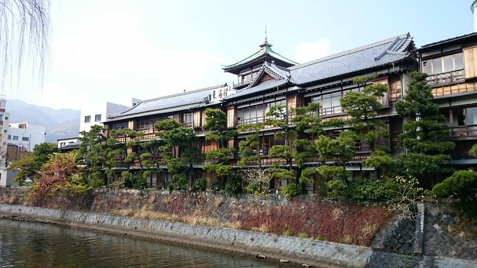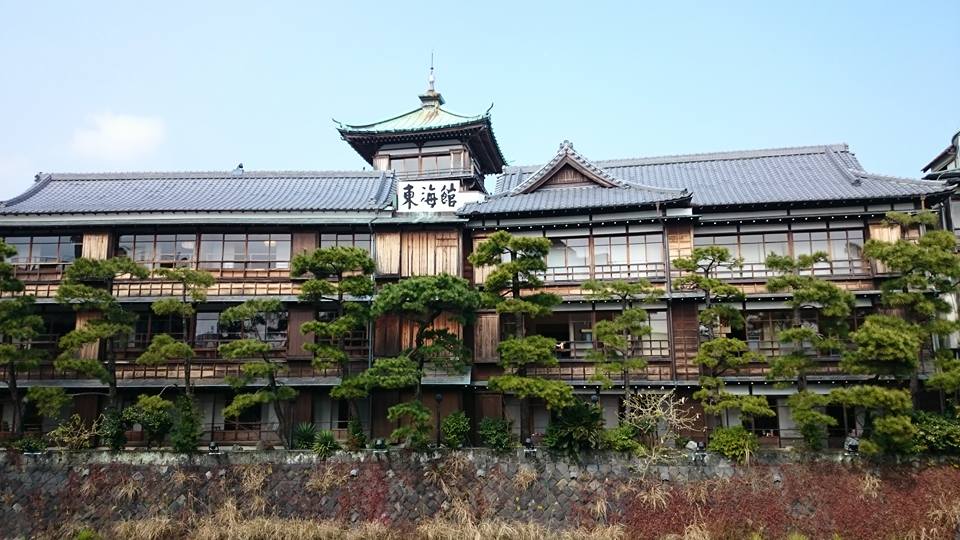 東海館の川沿いからの外観です。これぞ温泉旅館ですね。