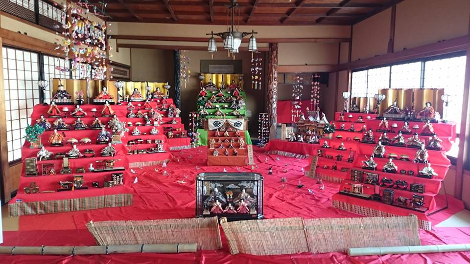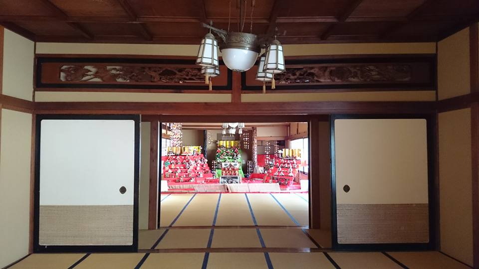 その玄関と大広間にお雛様が飾られています。