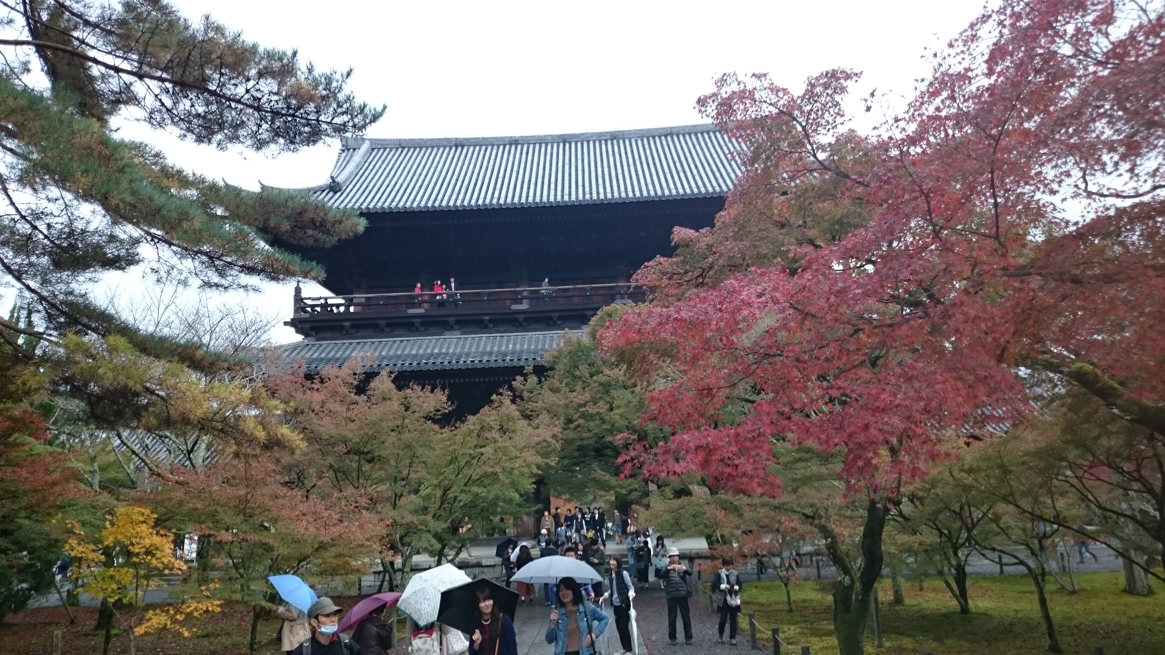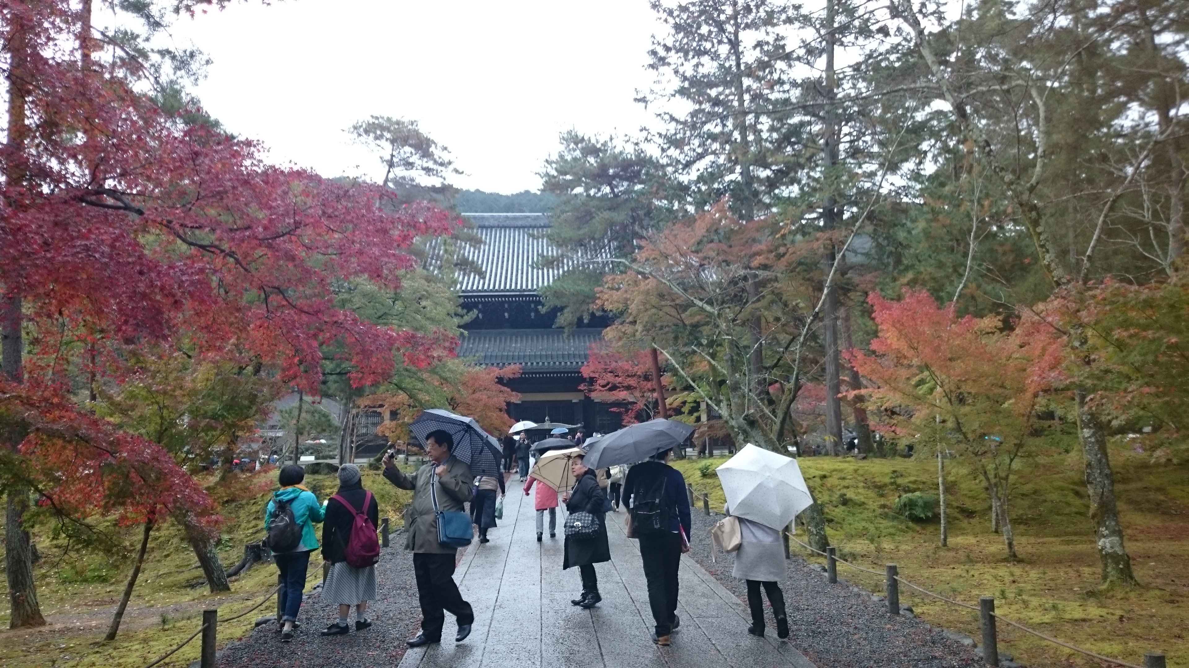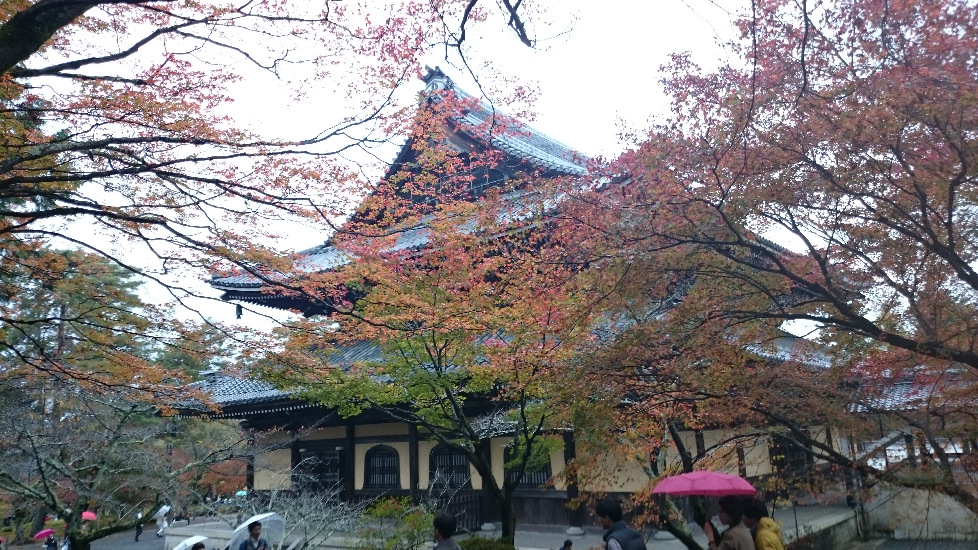 小雨が降る中での散策なのでいまいち紅葉が映えませんが仏閣にモミジの紅葉は綺麗です。