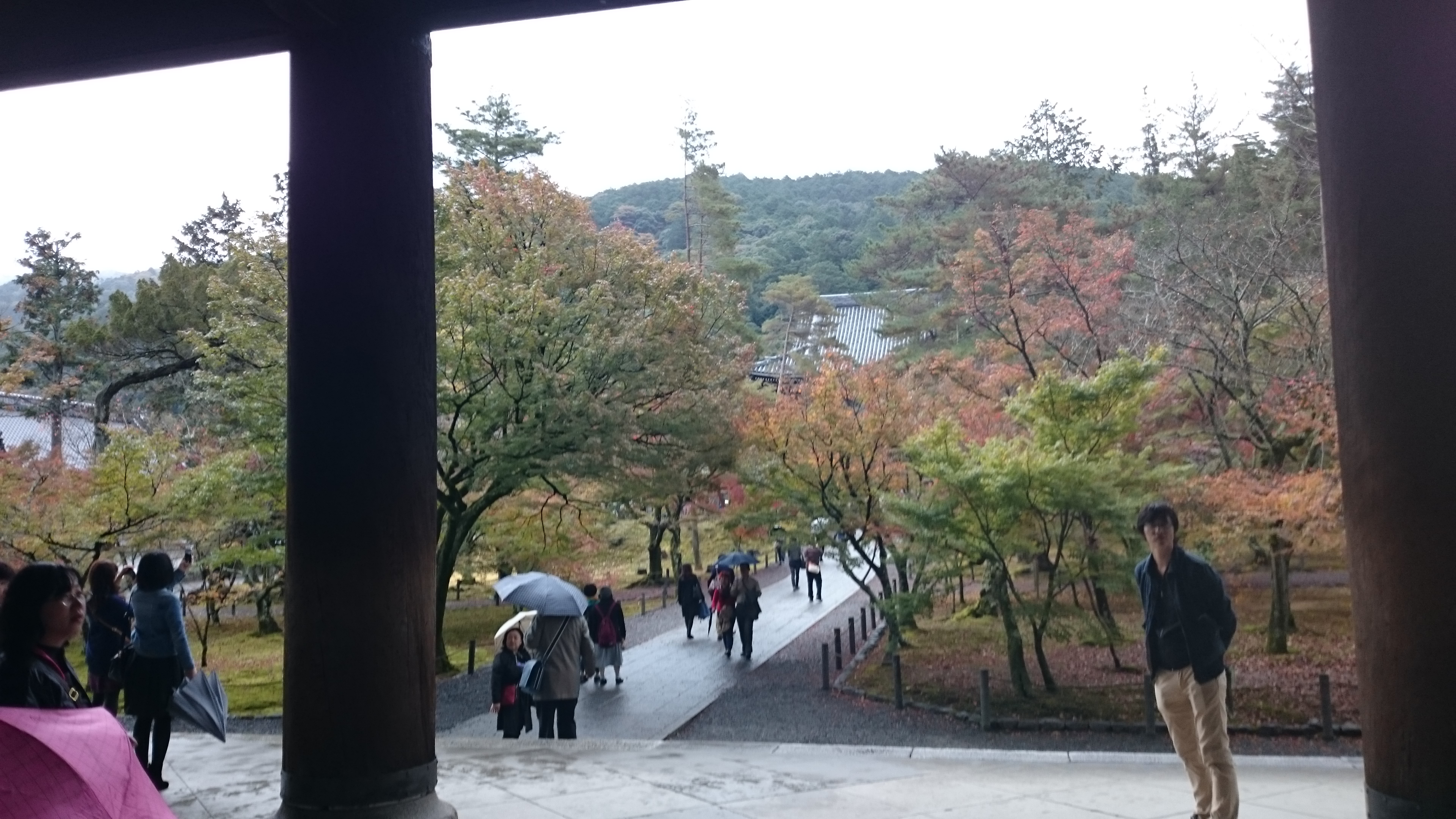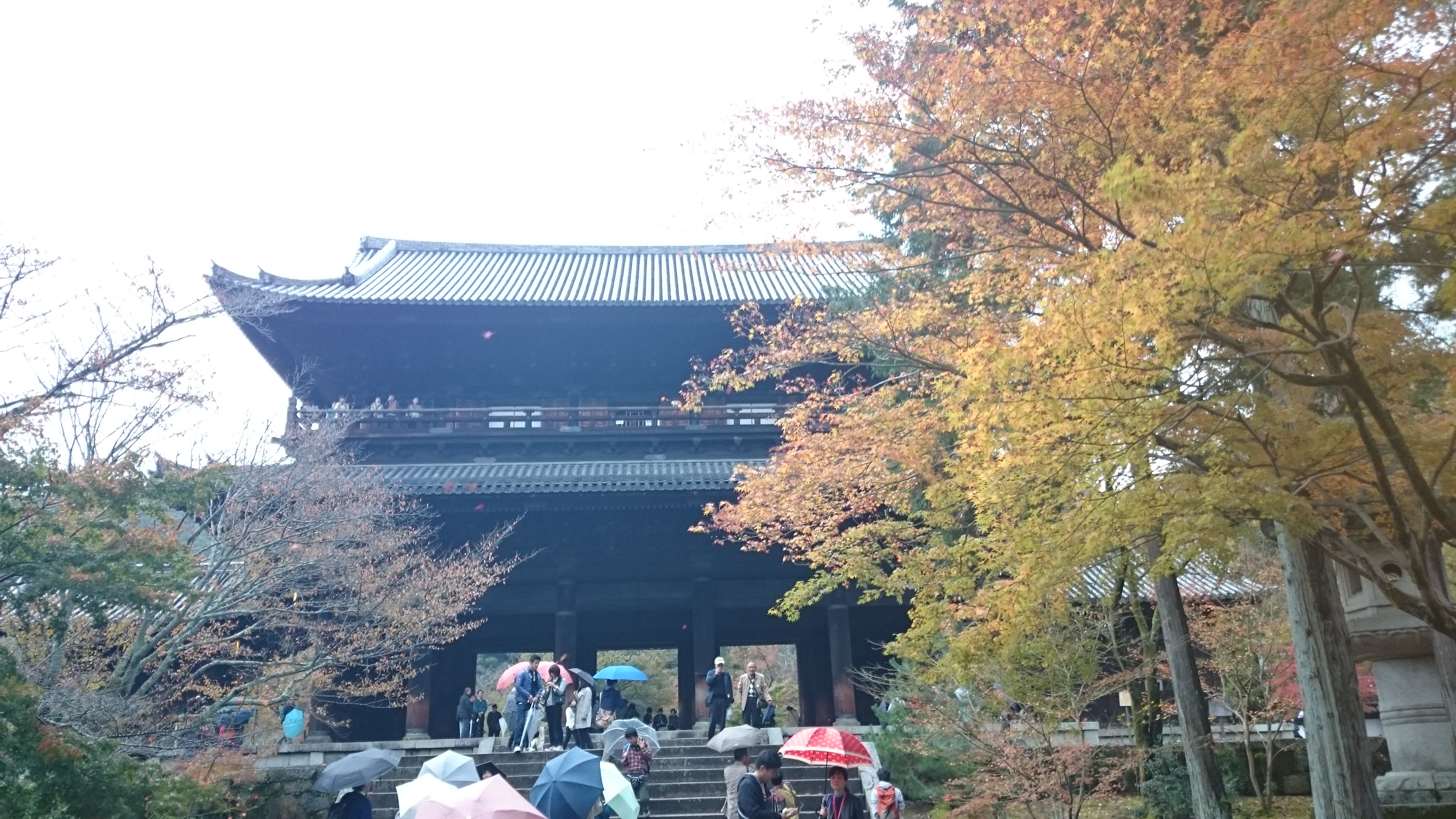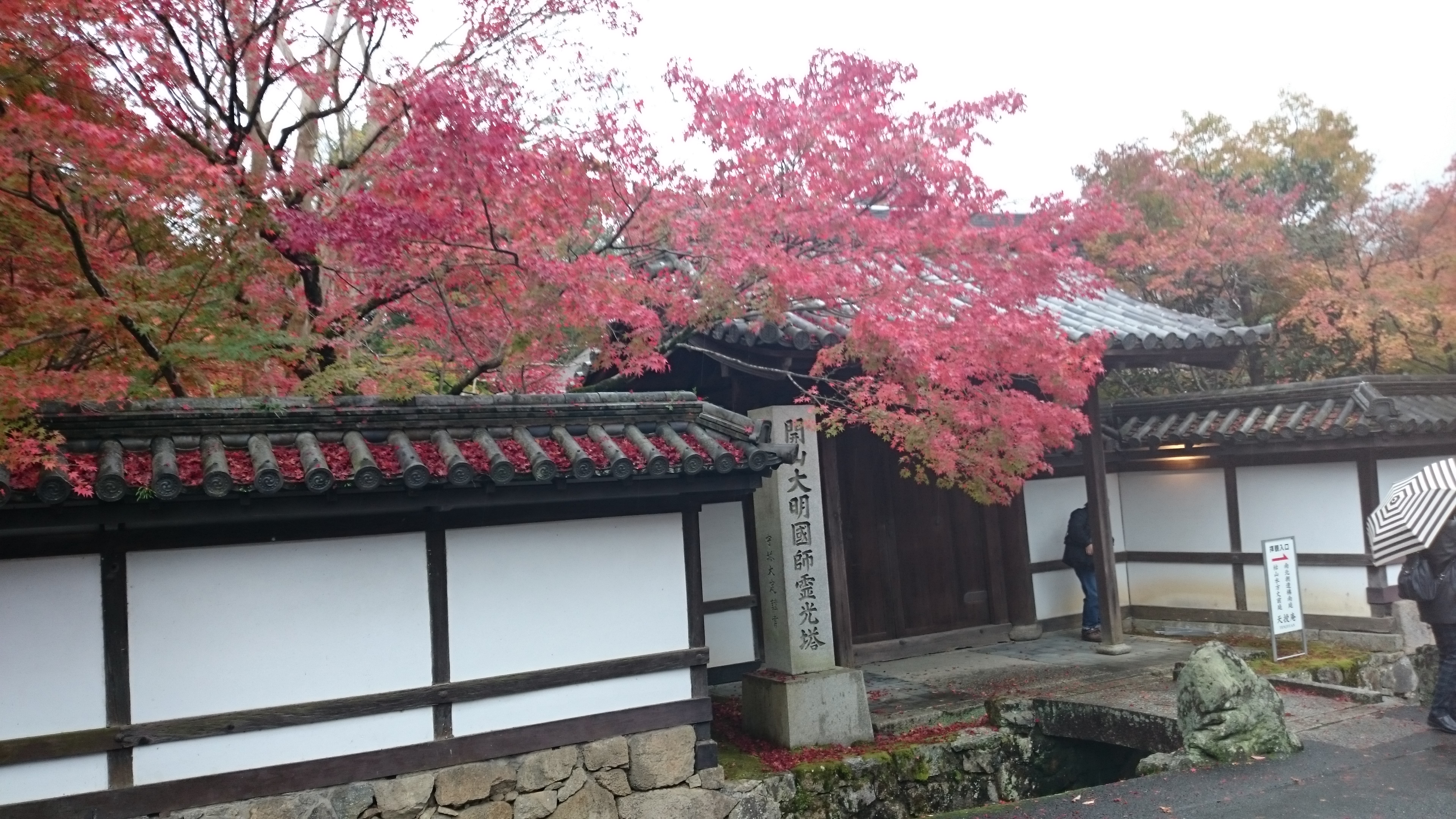 小雨が降る中での散策なのでいまいち紅葉が映えませんが仏閣にモミジの紅葉は綺麗です。